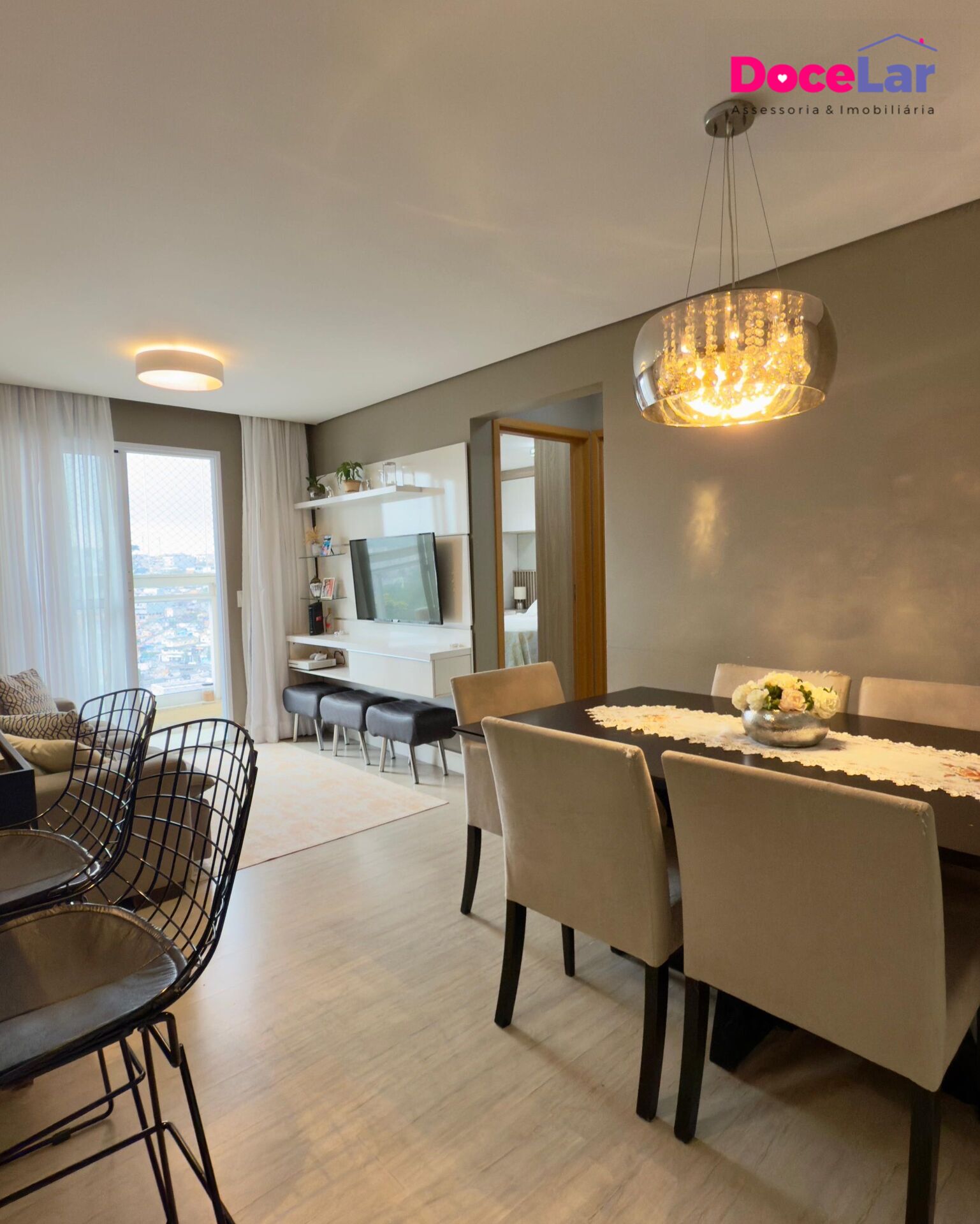 2 Dormitórios, sendo 1 suíte2 Banheiros1 VagaGaragem Coberta1 Sala de TV1 Cozinha1 Sala de jantar1 Sala de estar1 Área de serviço