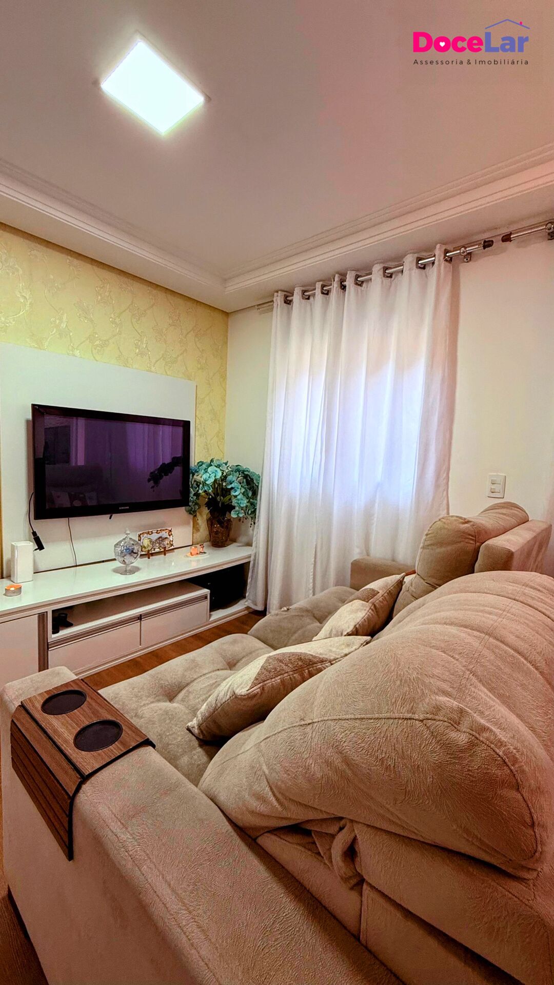 2 Dormitórios, sendo 1 suíte2 Banheiros1 Vaga1 Sala de TV1 Cozinha1 Sala de jantar1 Sala de estar1 Área de serviço